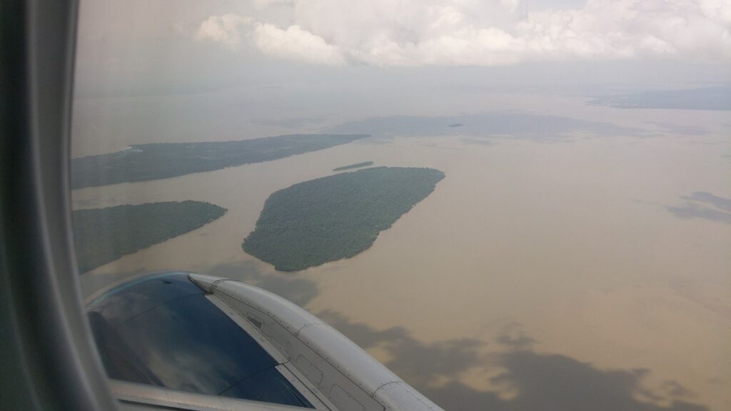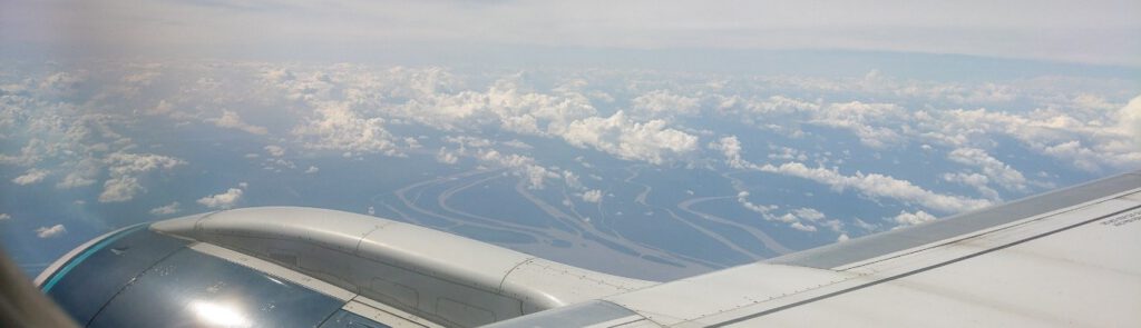 Träge fließende Zuflüsse im Einzugsbereich des Amazonas zwischen Belém und Altamira am Xingú aus dem Fluzeug fotografiert. (Abbildung: Stefan Karl Hetz)
